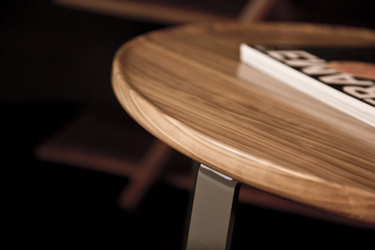 Pad is a coffee table that reinterprets the tray form and produced by using natural wood coating on sheet metal legs. Wenge, walnut timber and oak are among production options.